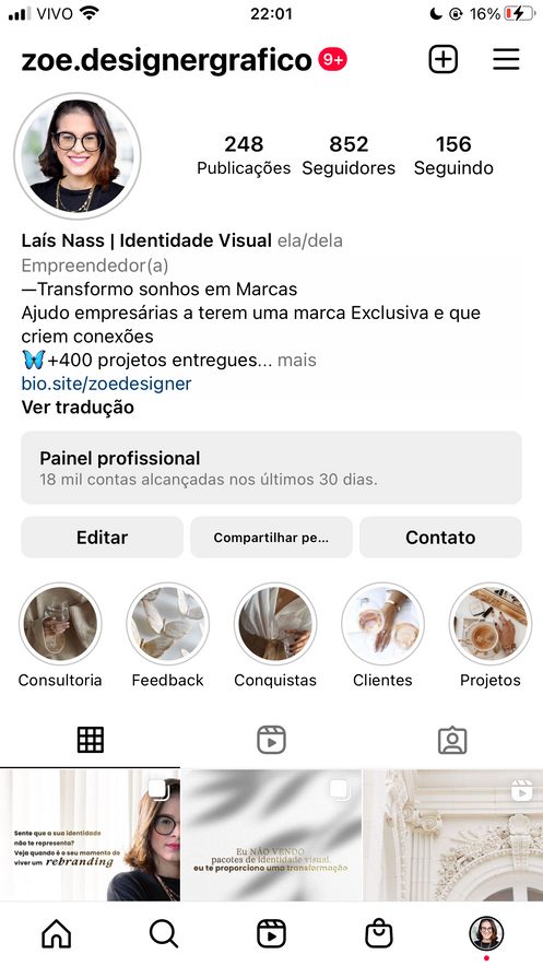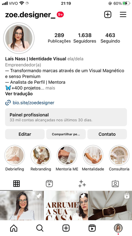 Ajuste no perfil do instagram, ajuste na comunicação > posts do instagram, linha editorial, stories.